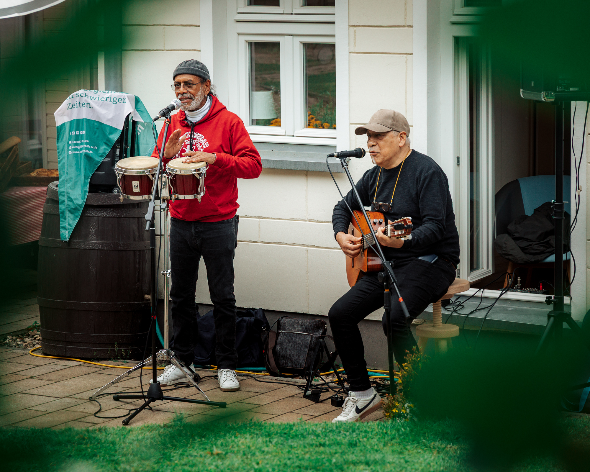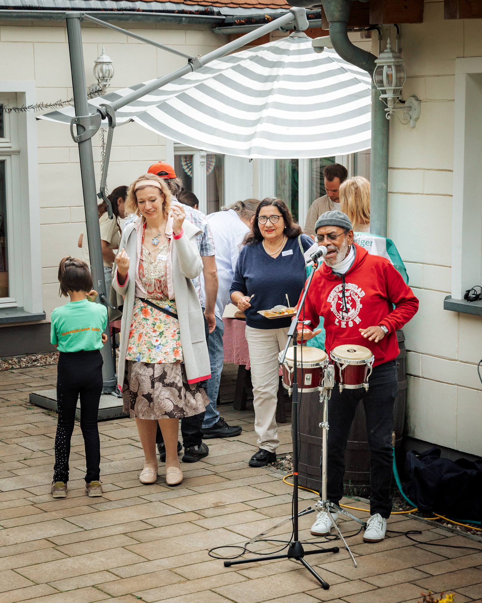 Schon beim Ankommen war spürbar: Hier geht es um mehr als nur ein Treffen – es war ein herzliches Wiedersehen, ein Kennenlernen neuer Gesichter und vor allem ein Miteinander in entspannter, sommerlicher Atmosphäre. Der große Garten bot die perfekte Kulisse für gute Gespräche, Lachen und Begegnungen. Und im Hintergrund sorgten die beiden Musiker Eduardo und Ramon immer wieder für musikalische Highlights.