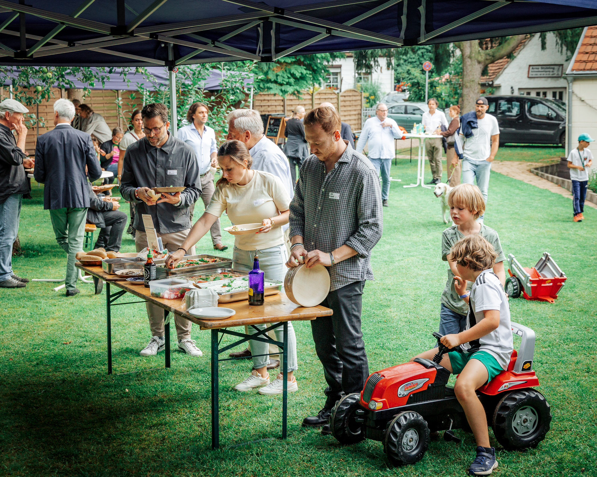 Unser Buffet ließ keine Wünsche offen: Fingerfood, Flammkuchen frisch aus dem Ofen, Leckeres vom Grill – und Süßigkeiten und mehr. Koordiniert hatte dies Harald Grunert und ein tolles Team mit besonderen Essensangeboten zusammengestellt. Mit einem Glas Wein, einem kühlen Bier oder erfrischenden alkoholfreien Getränken in der Hand schmeckte der Sommer gleich doppelt so gut. Besonders beliebt war auch die Foto-Box in der kleinen Holzhütte – die entstandenen Bilder sind eine schöne Erinnerung an diesen Abend. Bei der Begrüßung unterstrich der stellvertretende Vorsitzende Norbert Lemken die Bedeutung der Kooperation zwischen dem Westwind e.V. und der Kinderhilfe e.V. ; aber auch die spannenden Begegnungen mit den Mitgliedern.