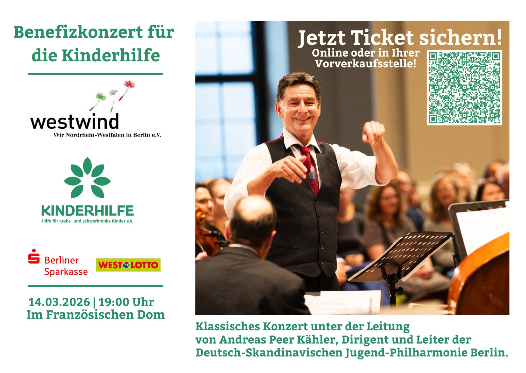Das Konzert findet am Samstag, 14. März 2026, um 19:00 Uhr im Französischen Dom am Gendarmenmarkt statt und ist ein exklusives Benefiz-Konzert zugunsten der Kinderhilfe – Hilfe für krebs- und schwerkranke Kinder e.V., die seit 1983 Familien mit einem schwer erkrankten Kind in Berlin und Brandenburg unterstützt. Rund 150 ehrenamtliche Helferinnen und Helfer begleiten die betroffenen Familien, während weitere Ehrenamtliche kreative Projekte für die Kinder und ihre Familien anbieten.